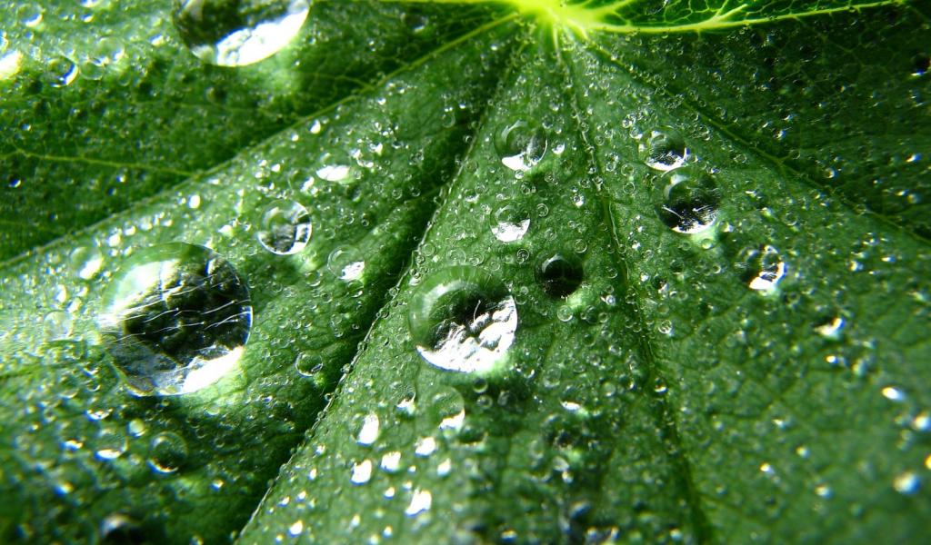 Wallpaper Drops on a green leaf