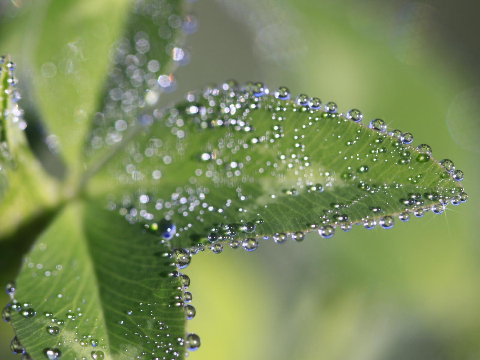» Wallpaper Dew drops on green leaves