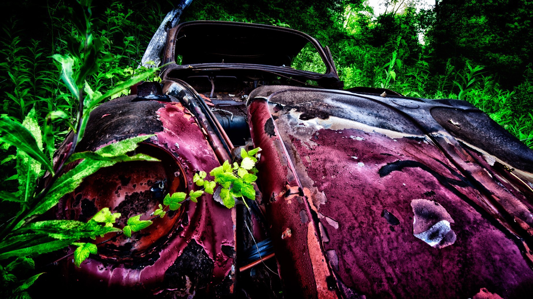 Wallpaper Remains pink car among thickets