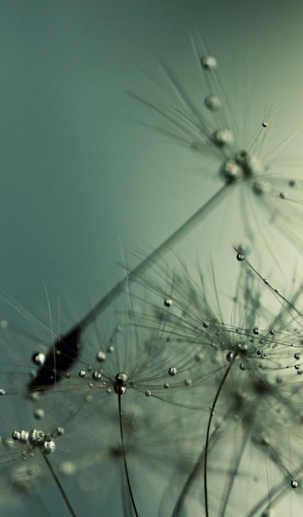 Wallpaper Water drops on dandelion seeds
