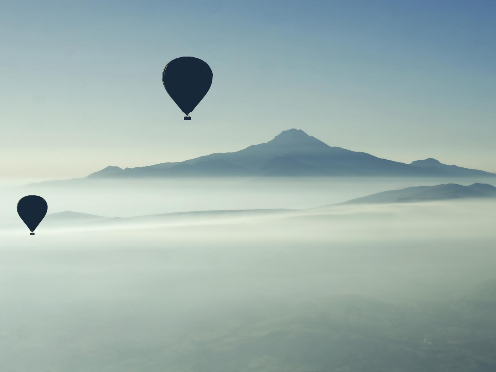 Wallpaper Black balloons above the fog
