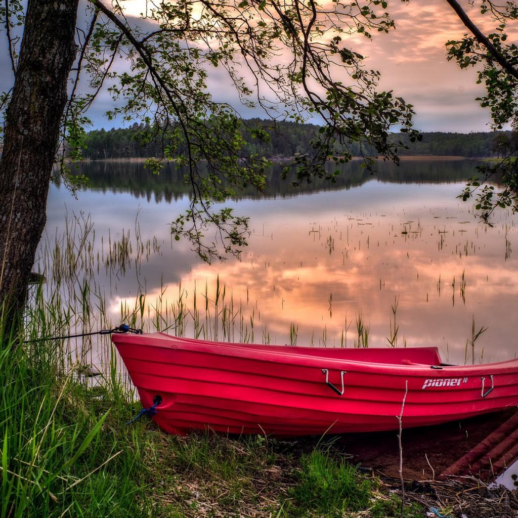 » Wallpaper Red boat on the waterfront