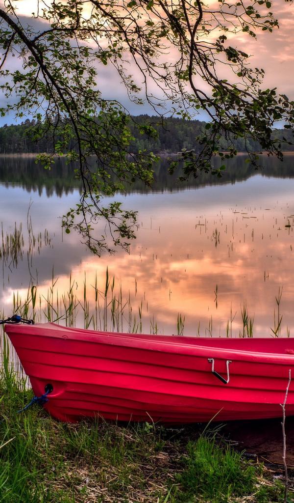 Wallpaper Red boat on the waterfront