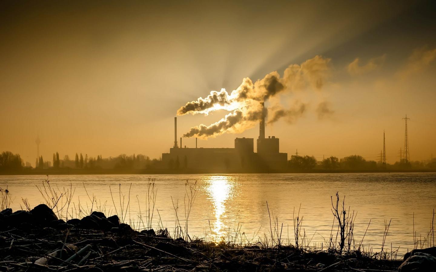 Wallpaper The sun`s rays penetrate the smoke from factory chimneys