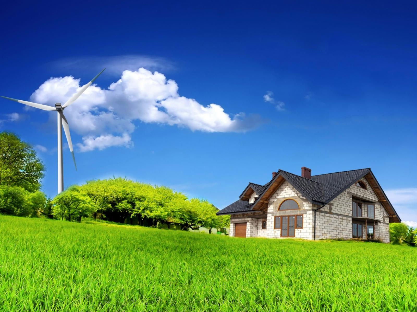 Wallpaper Wind turbine in a field near the house