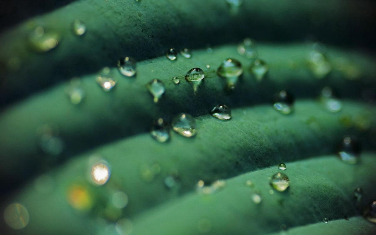 Wallpaper Transparent drops on green leaf
