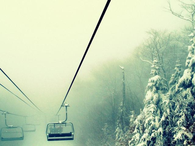 Wallpaper The cable car leaves in the fog