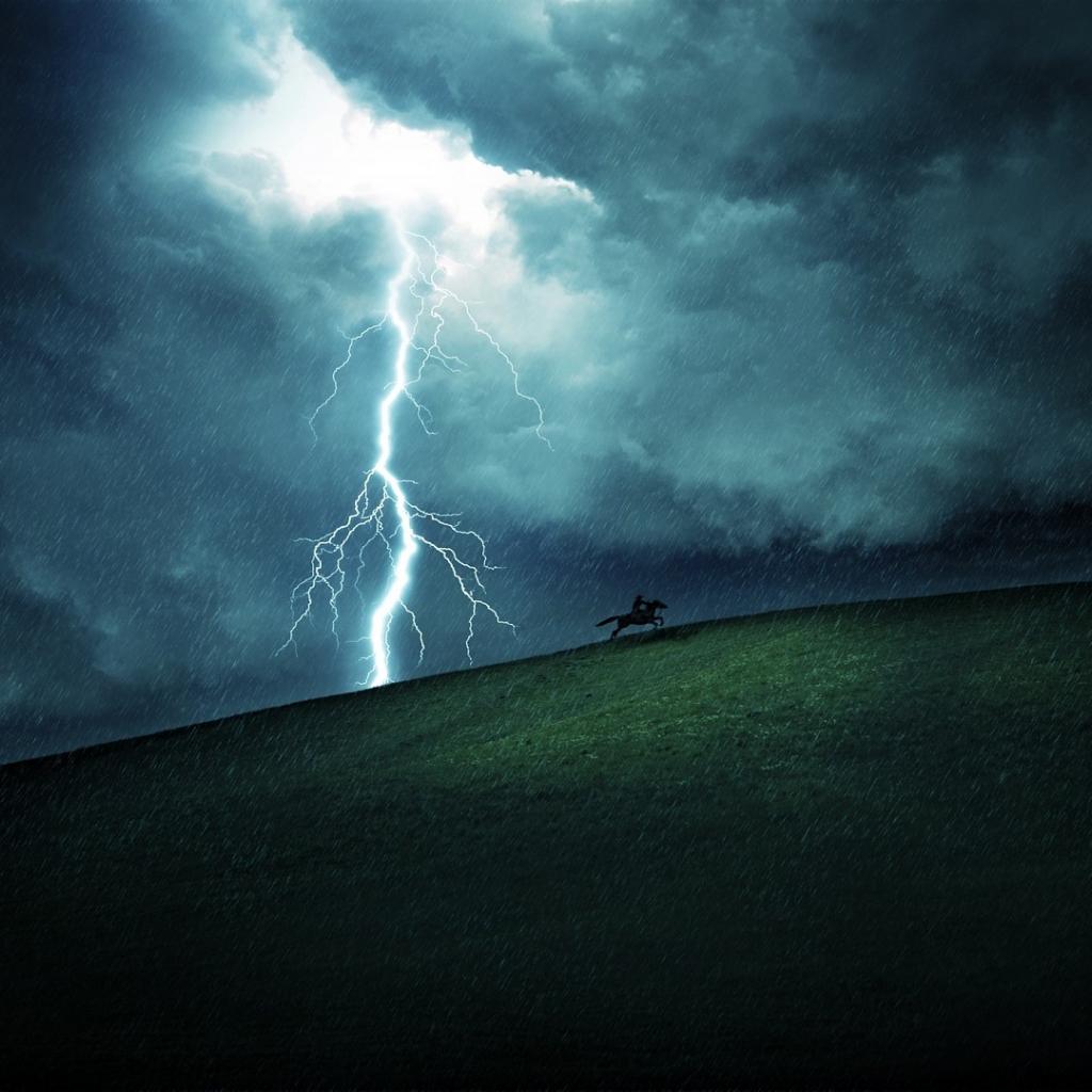 Wallpaper Rider escapes from lightning and thunderstorms