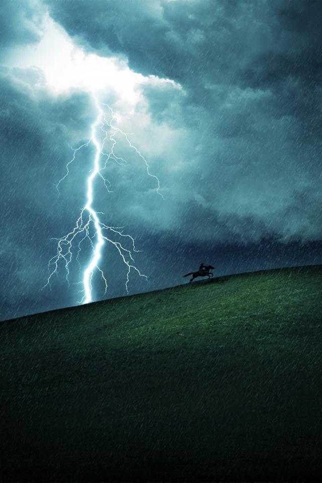 Wallpaper Rider escapes from lightning and thunderstorms