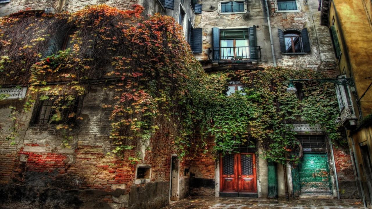 Wallpaper Old house overgrown with grass