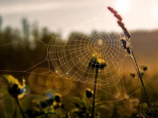 Wallpaper Cobwebs on the grass