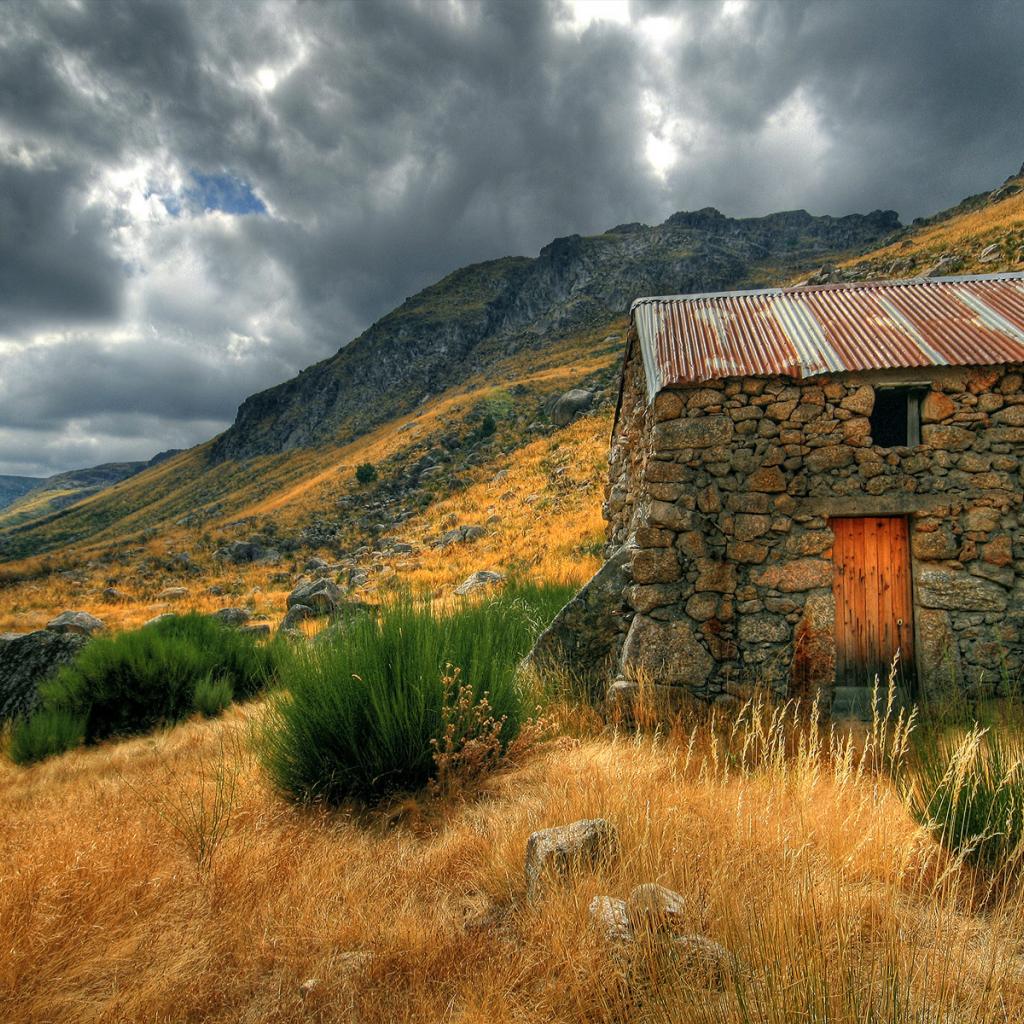 Wallpaper Stone barn on a slope