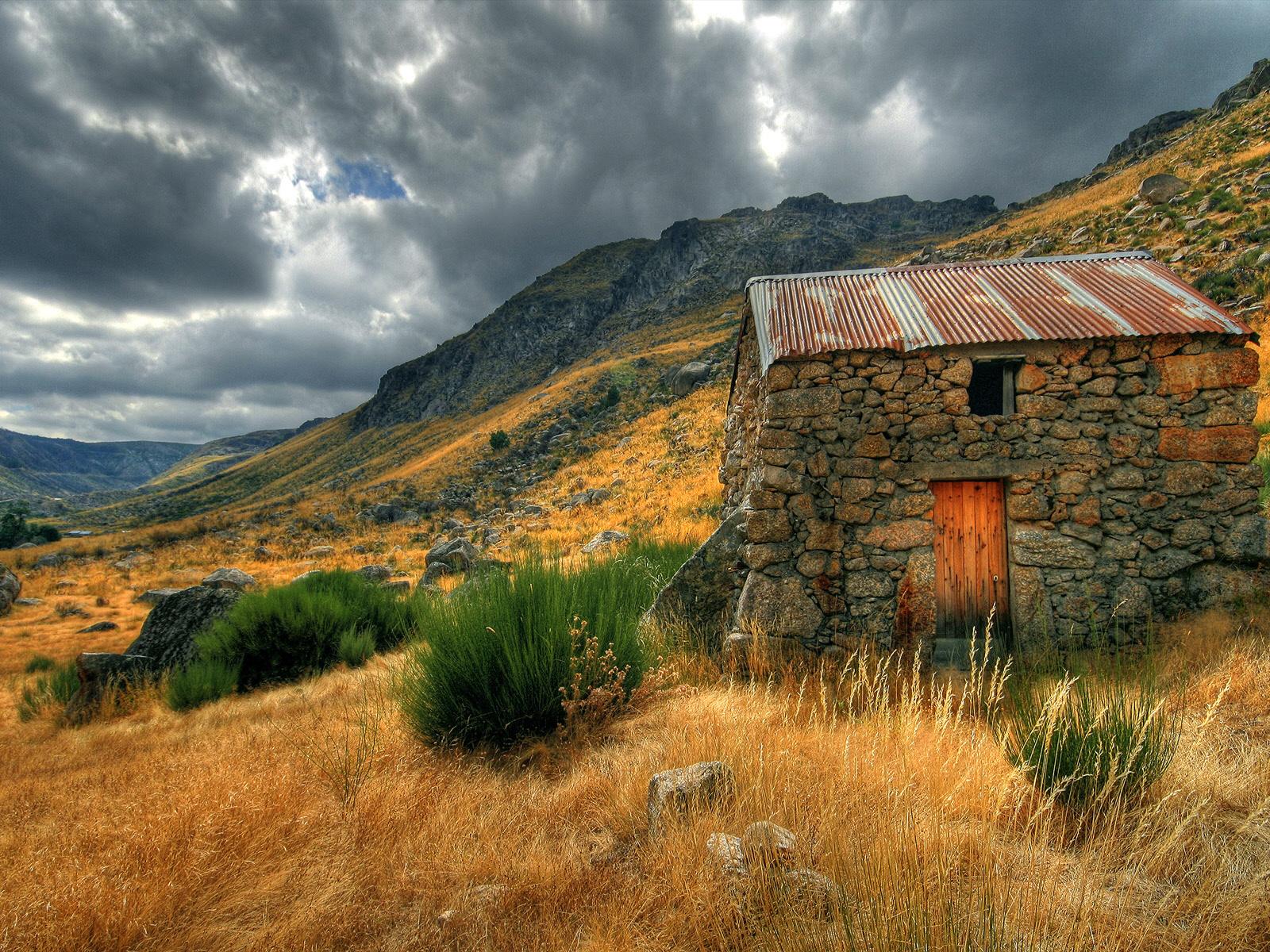 Wallpaper Stone barn on a slope