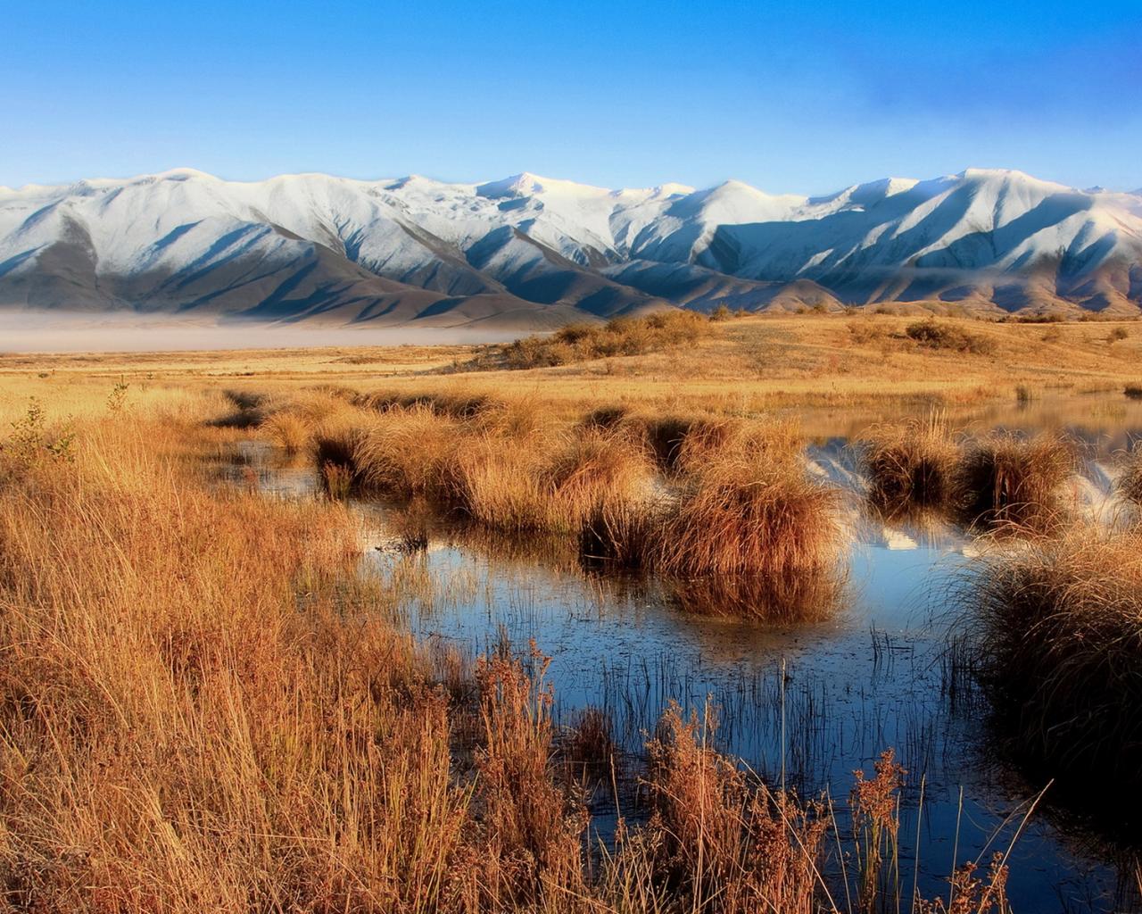 Wallpaper Marsh and mountains