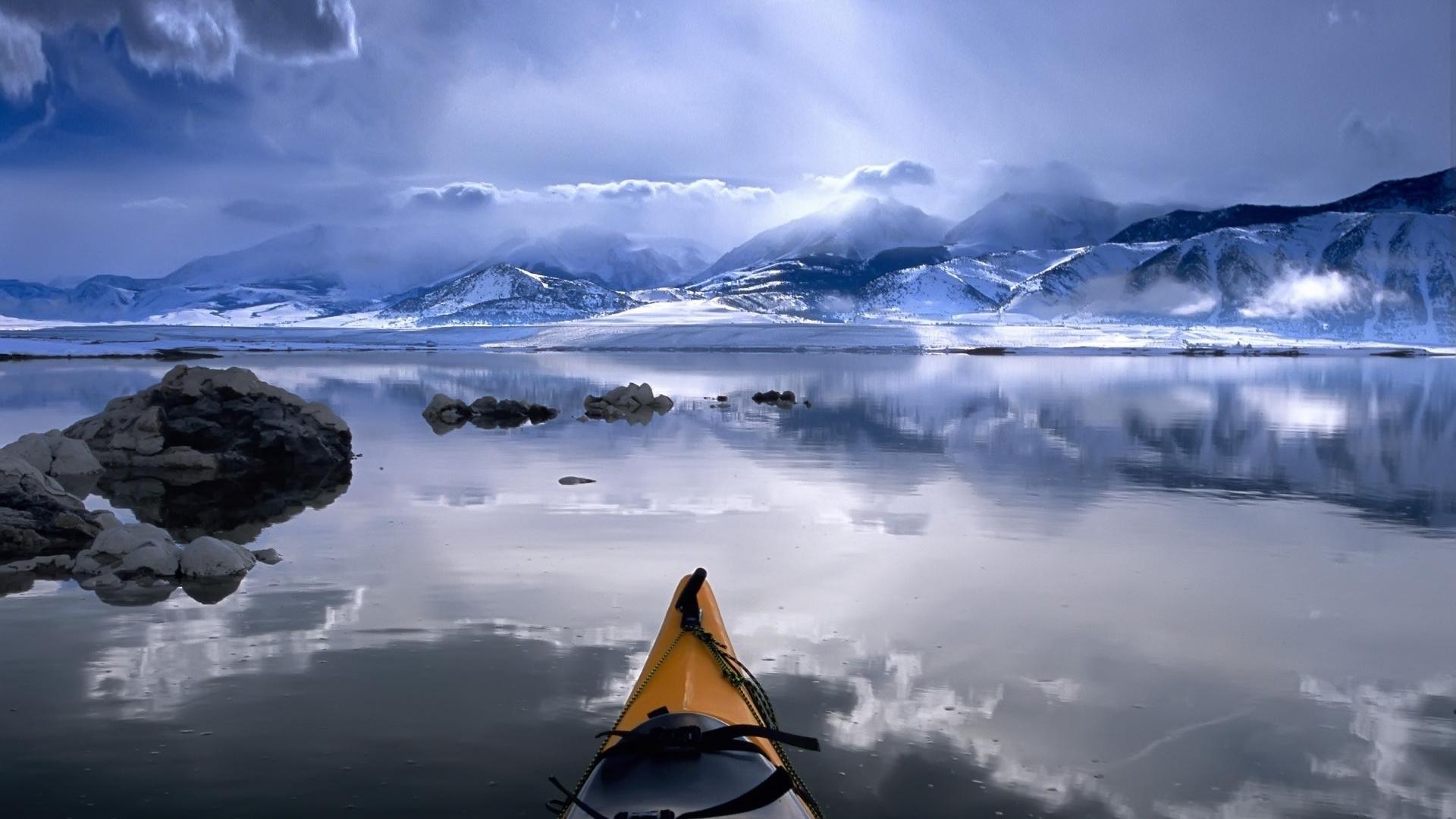 Wallpaper Walking through the mountain lake