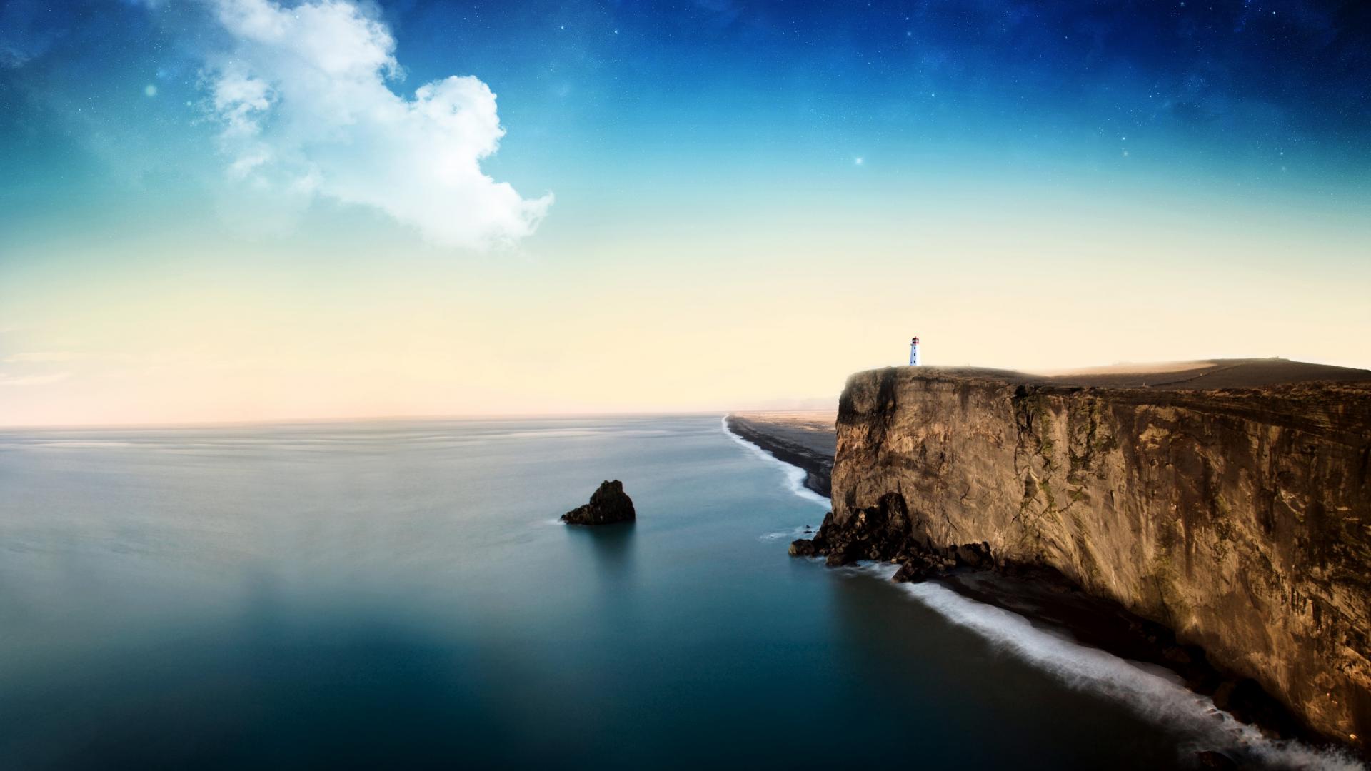 Wallpaper Lighthouse on a high bank