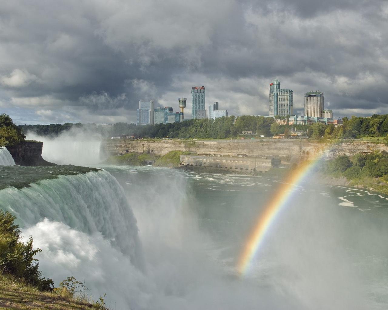 Wallpaper The spray, and a rainbow from the waterfall