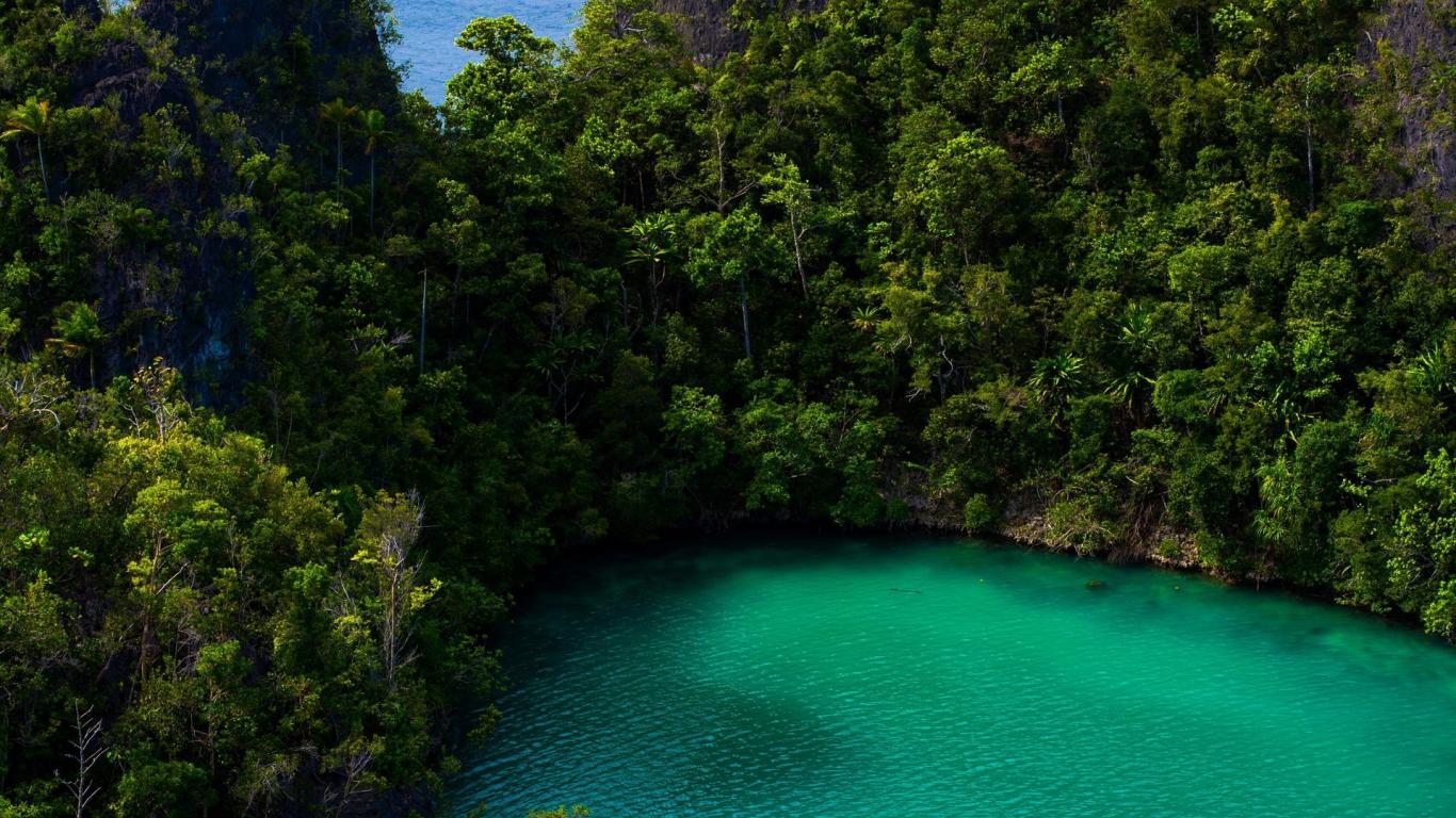 Wallpaper Turquoise lake in rainforest