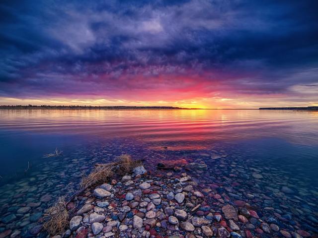 Wallpaper Quiet shallow lake at sunset