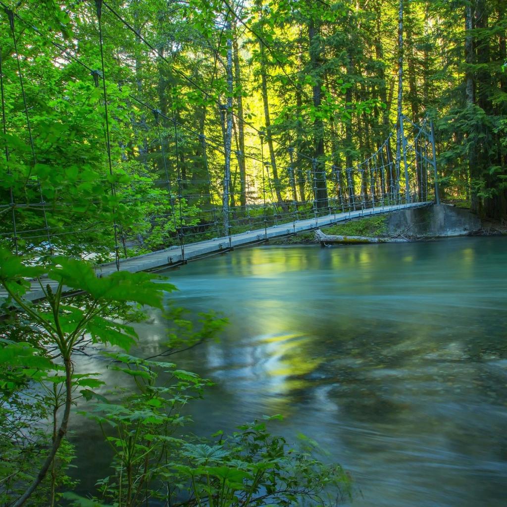 Wallpaper Rope bridge over the river in the forest