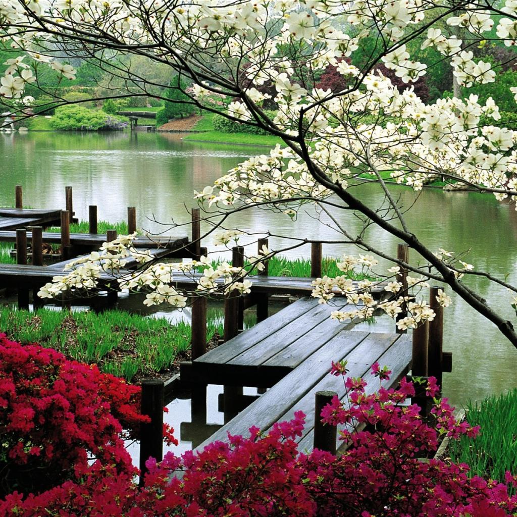 Wallpaper Wooden path for walks by the river