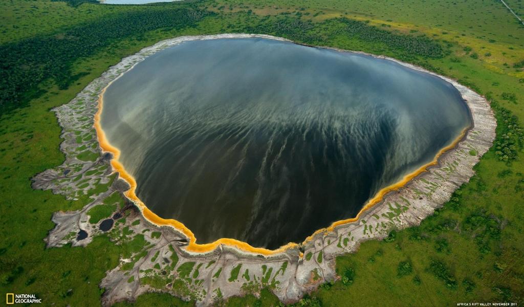 Wallpaper Round Lake among the fields from a height