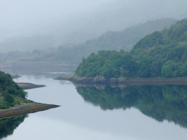 Wallpaper Meandering river in the middle of overgrown trees shores
