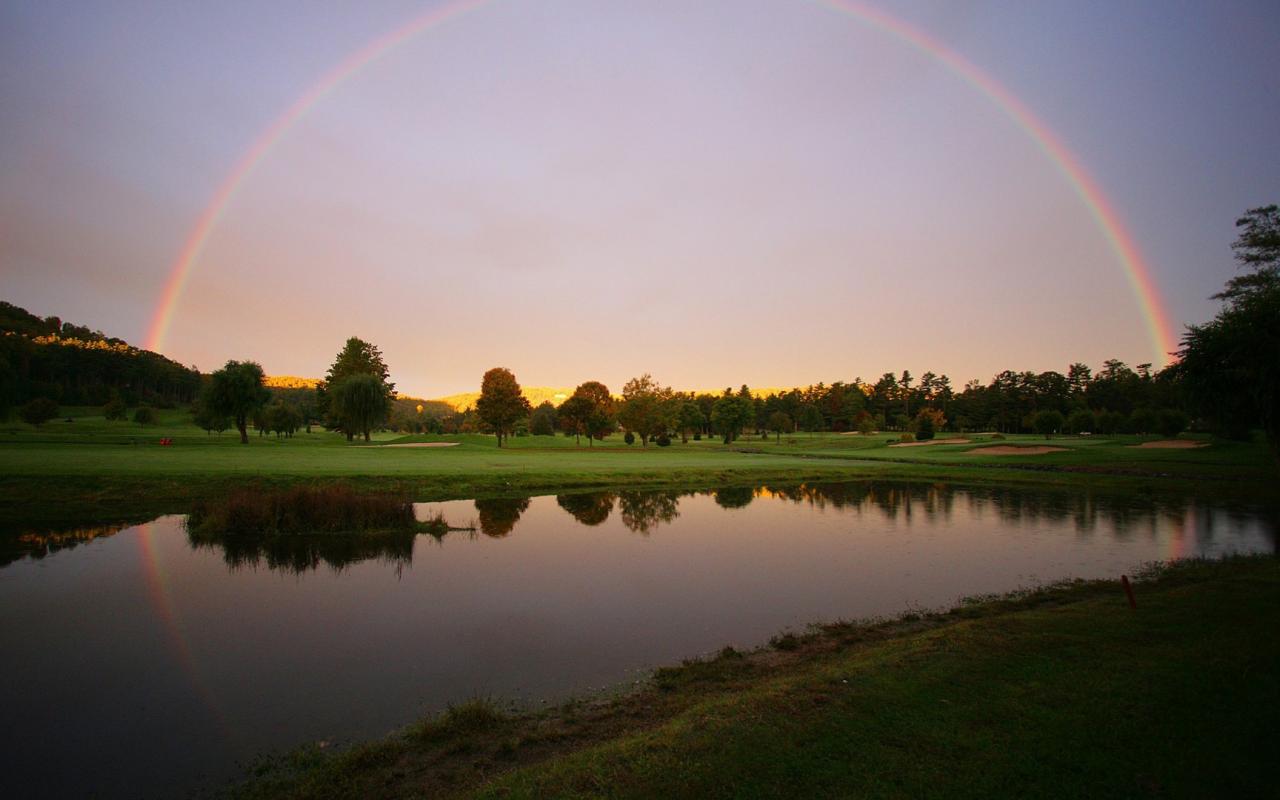 Wallpaper Rainbow after the rain over the lake