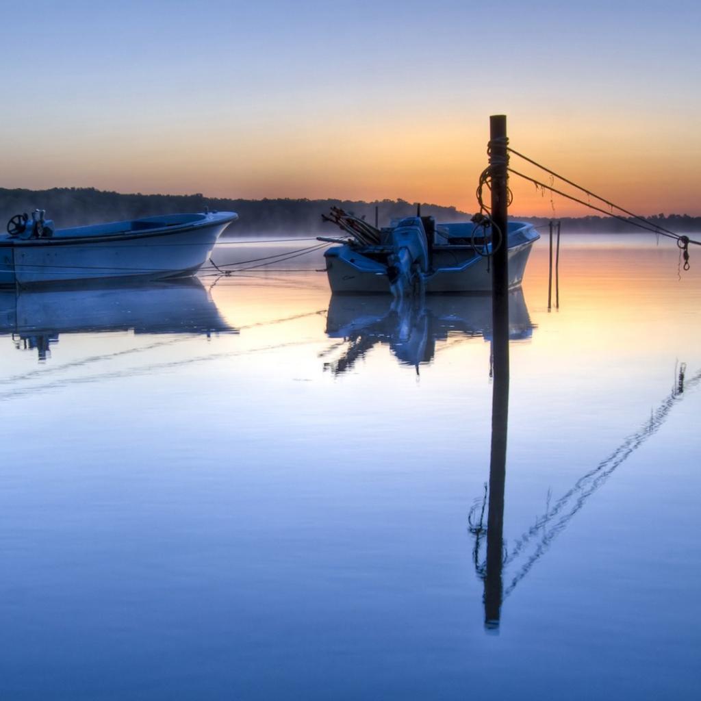 Wallpaper Two motor boat on a quiet surface of the lake