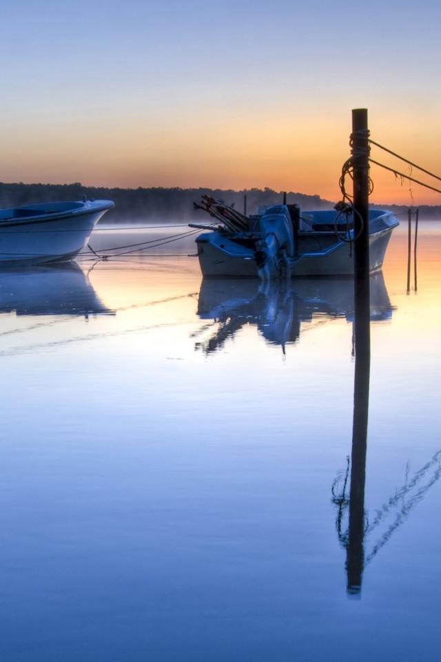 Wallpaper Two motor boat on a quiet surface of the lake