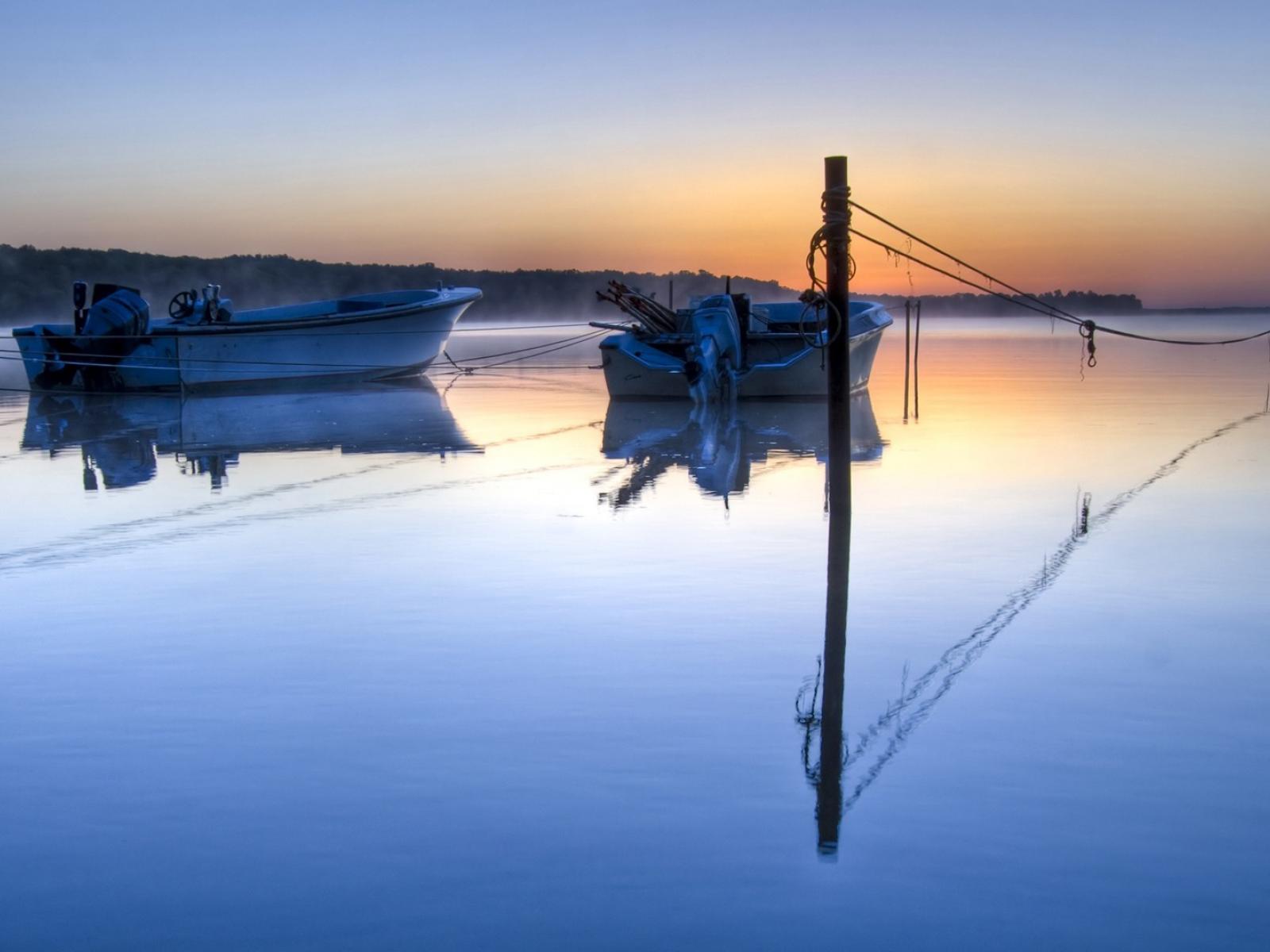 Wallpaper Two motor boat on a quiet surface of the lake