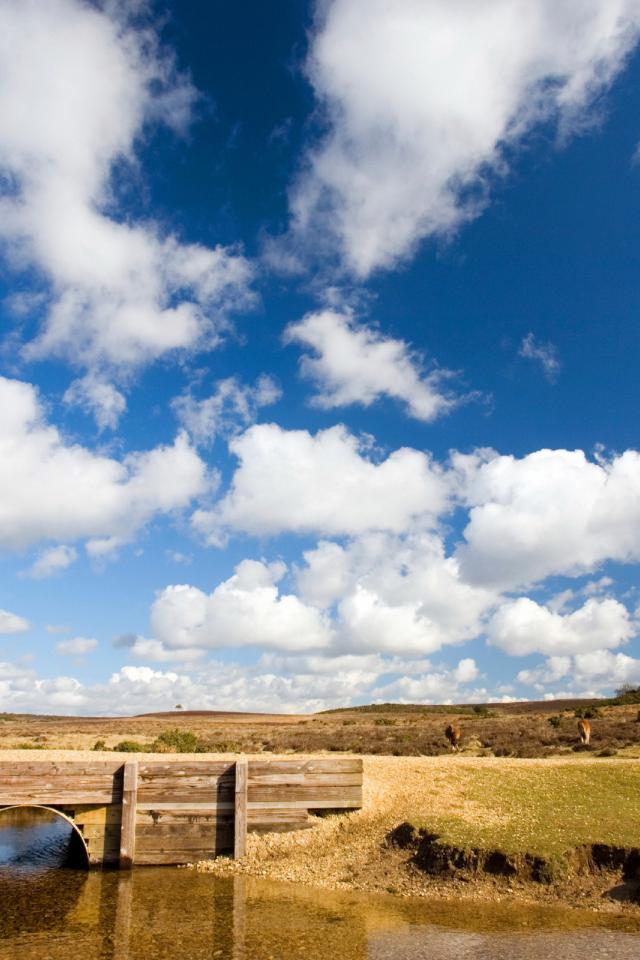 Wallpaper White clouds above the bridge