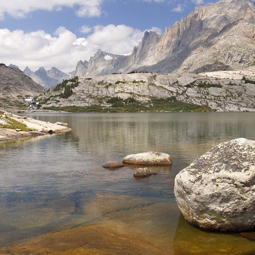 Wallpaper A lone boulder in the lake