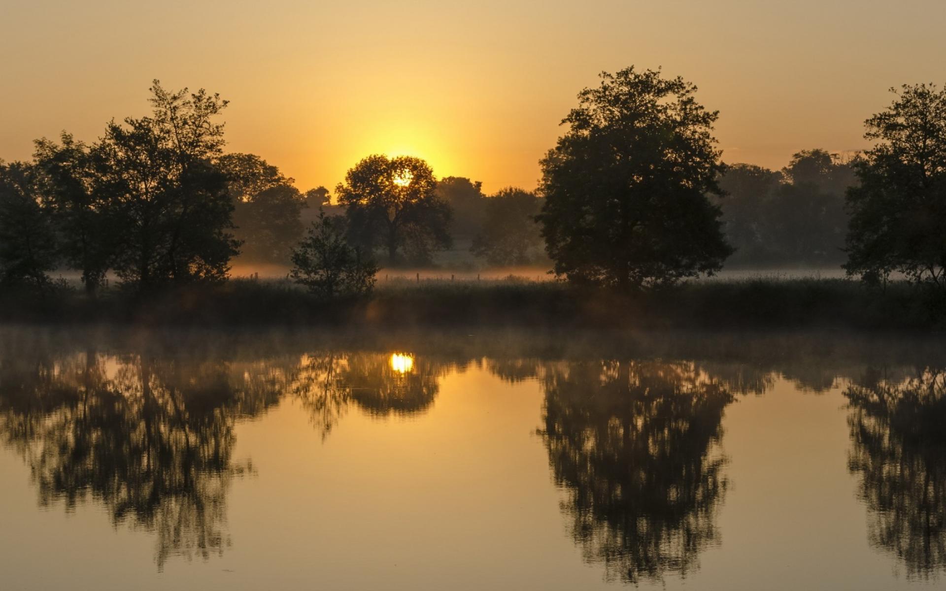 Wallpaper Evening mist over the river