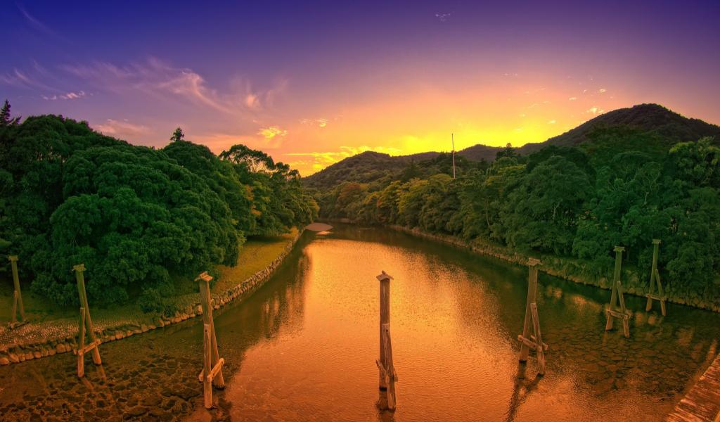 Wallpaper Wooden poles in the channel