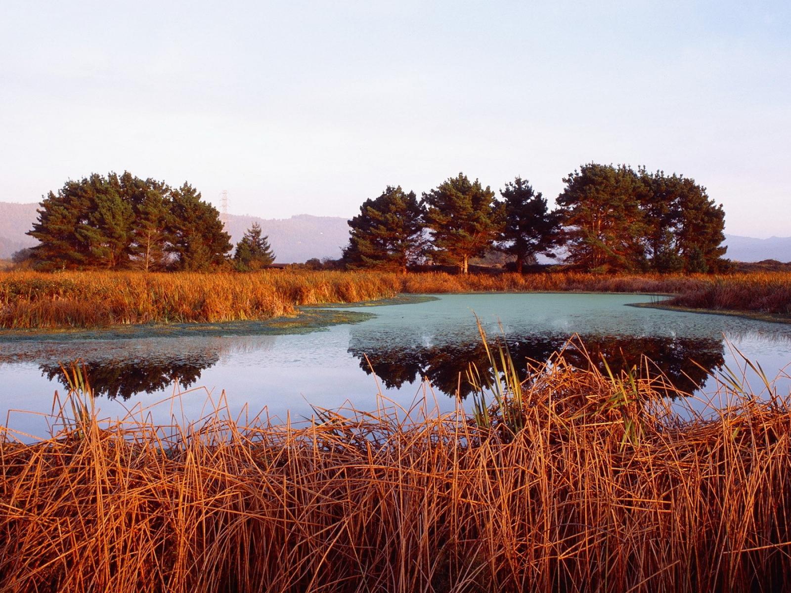 Wallpaper Red grass lake