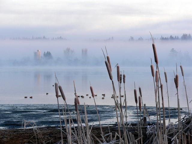 » Wallpaper Reed and mist on the lake