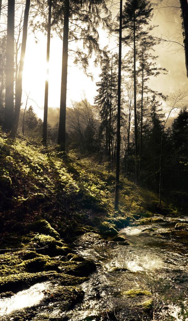 Wallpaper The river flows through the forest