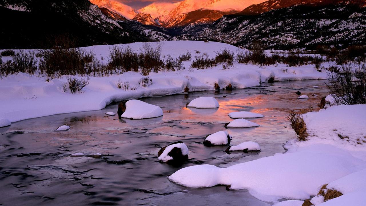 Wallpaper Snow, Trees, Snow-capped mountains, Mountain lake, Relax
