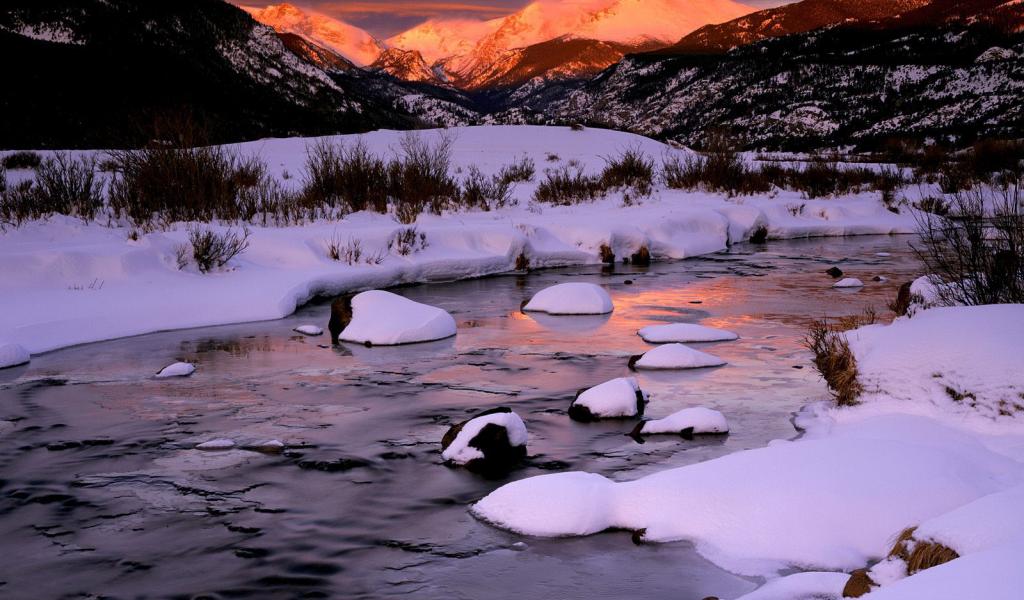 » Wallpaper Snow on the mountain river