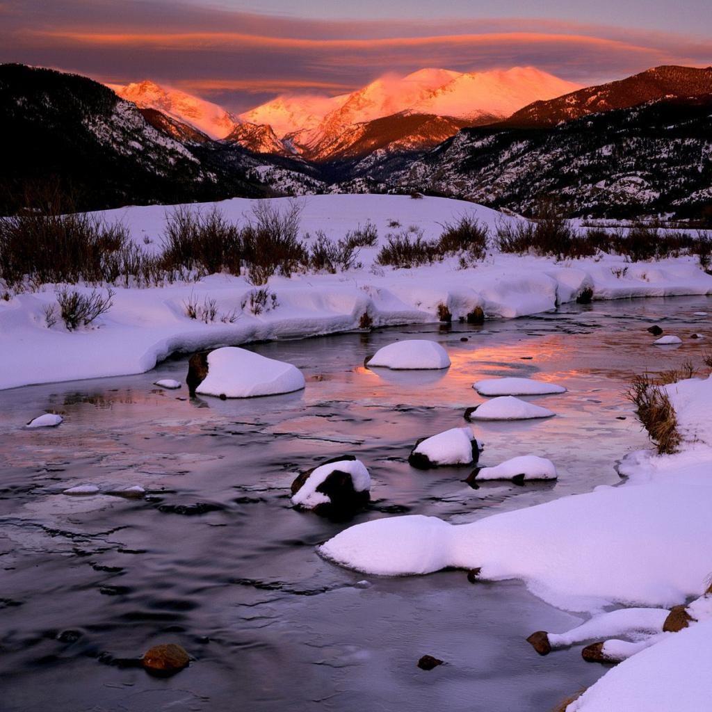 » Wallpaper Snow on the mountain river