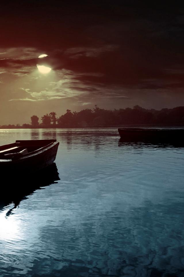 Wallpaper Moonlight night on the river