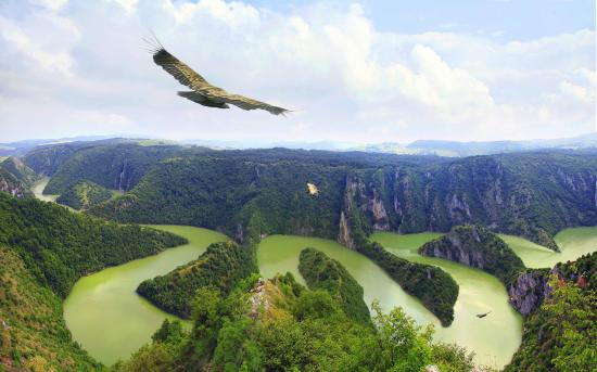Wallpaper The eagle flying over the river