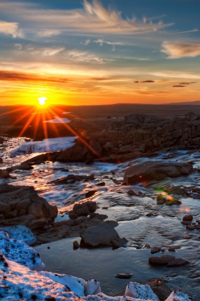 Wallpaper The sun disappears behind the horizon