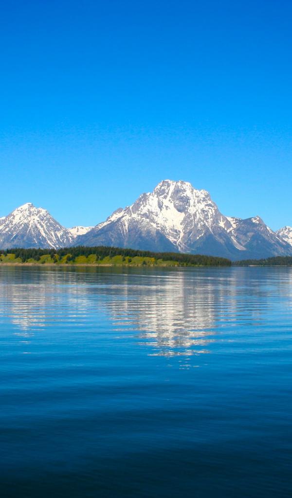 Wallpaper The snowy mountains to the lake