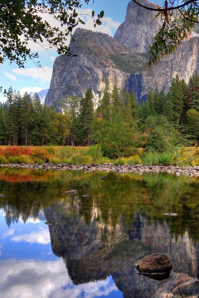 Wallpaper The forest and the lake, the rocks