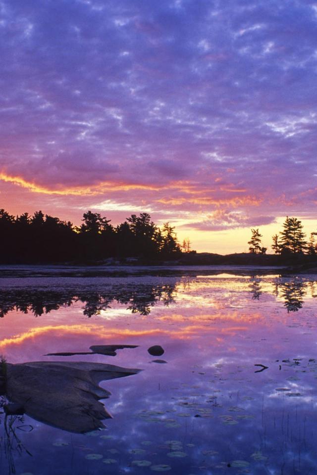 Wallpaper Overgrown lake at sunset