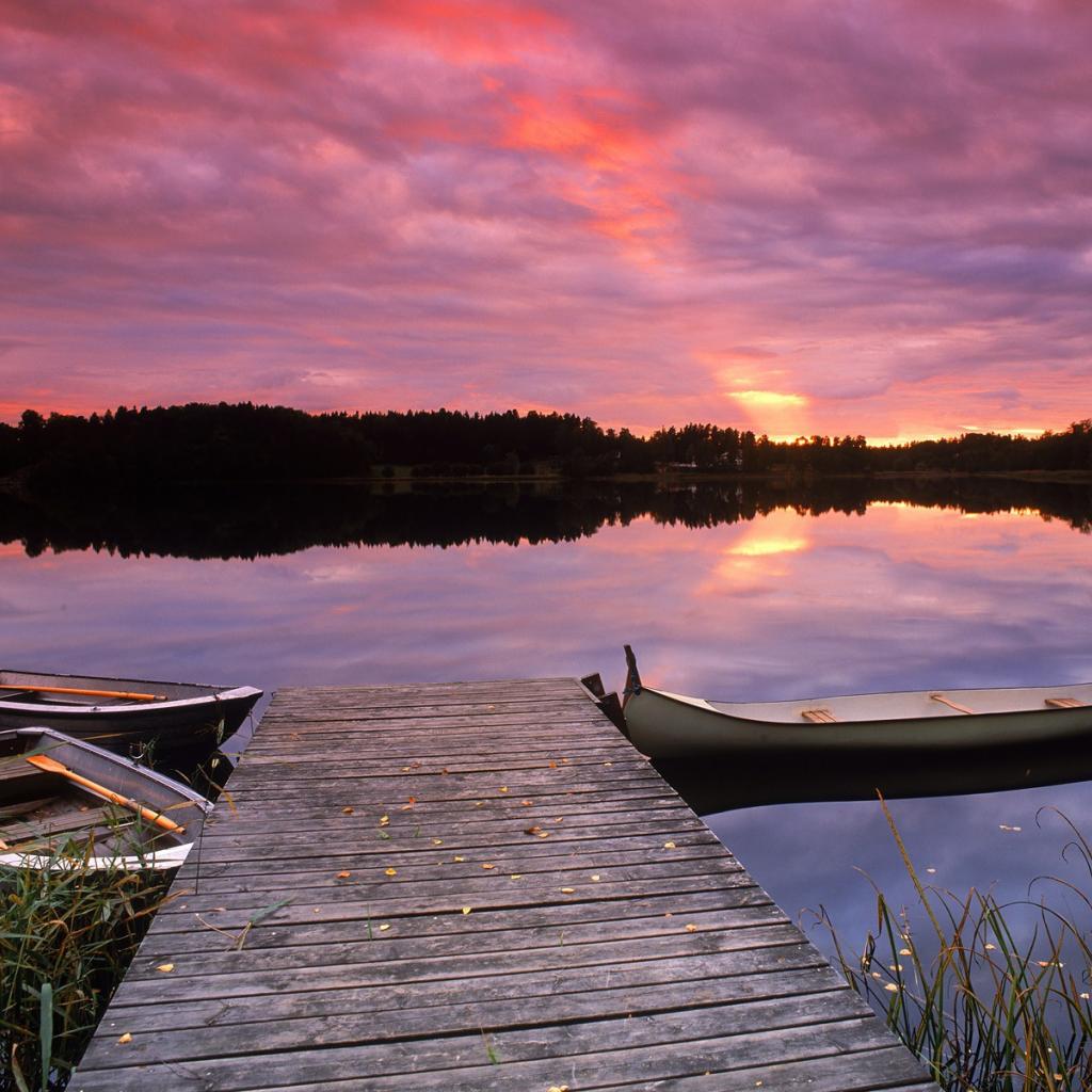 Wallpaper A pier for boats in the evening