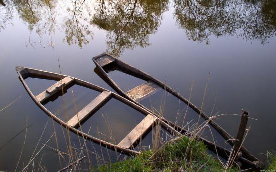 Wallpaper Sunken boats on the lake