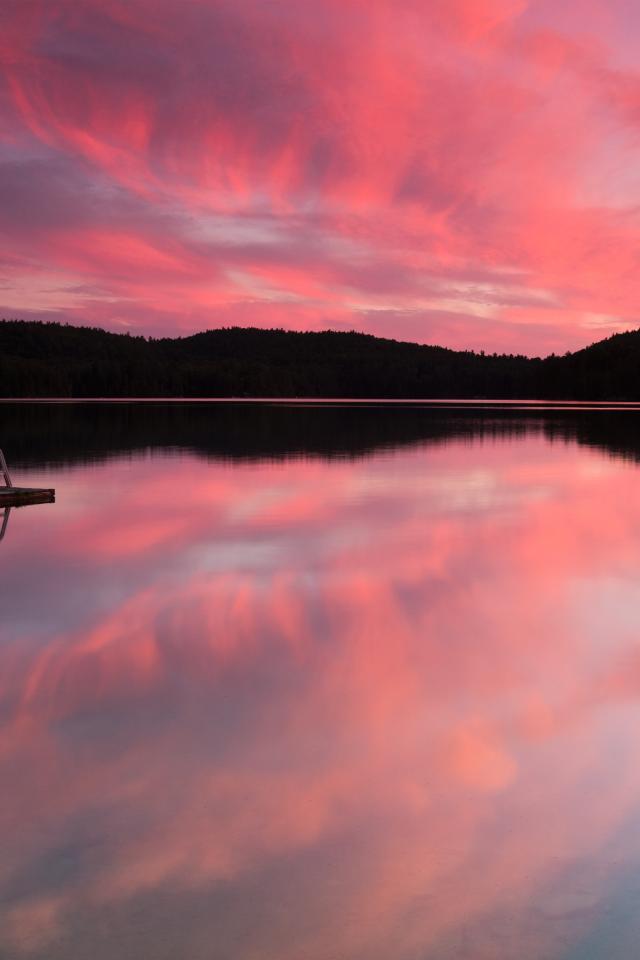 Wallpaper Reflection of pink sky in the lake